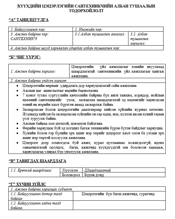 Цэцэрлэгийн үйл ажиллагааг хэвийн явуулахад шаардлагатай сантехникийн үйл ажиллагааг хангаж ажиллана.
